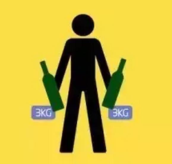 2.兩只手各拎3公斤重的瓶子,手臂會不會感到酸痛