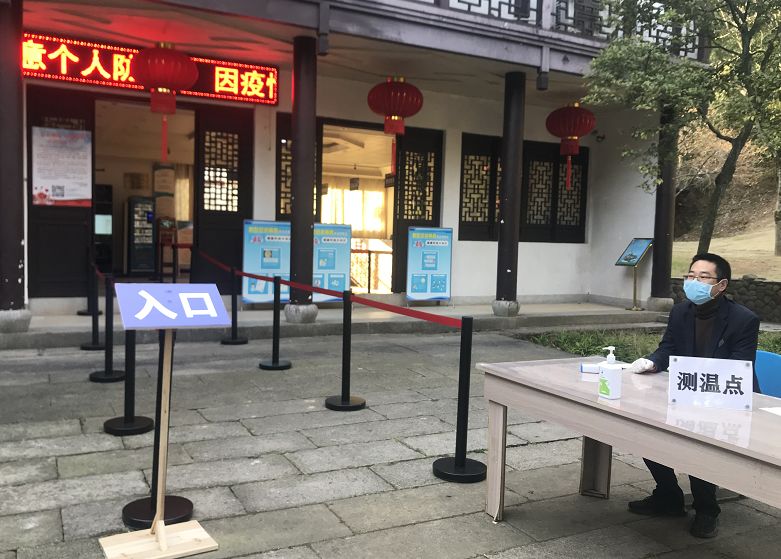 為做好疫情防控和開門迎客,文旅集團做好做足了恢復營業(yè)的準備。各景區(qū)設置了臨時隔離區(qū),并對售檢票處、游客中心、咨詢處等人員進出較多的空間安排了專人進行消毒。在景區(qū)入口處設置了測溫臺,游客進入景區(qū)需要監(jiān)測體溫、出示綠碼、身份證實名登記,配備了速干洗消毒液,工作人員全員佩戴口罩,景區(qū)內(nèi)各處張貼防疫宣傳海報。對未佩戴口罩的游客進行提醒,并指導游客使用支付寶“家人代辦”功能為同行的老人、小孩子申領健康碼等一系列管理安排,只為讓游客游覽無憂。